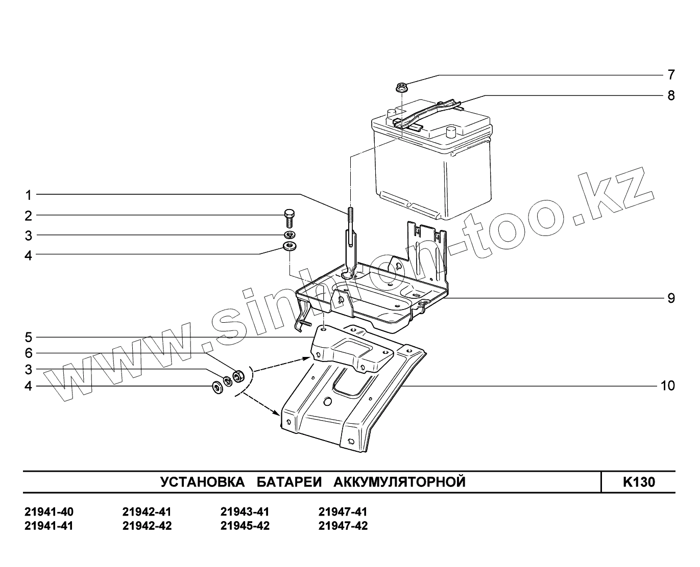Каталог запасных частей к технике: ВАЗ LADA Kalina 2194. K130. Установка батареи аккумуляторной