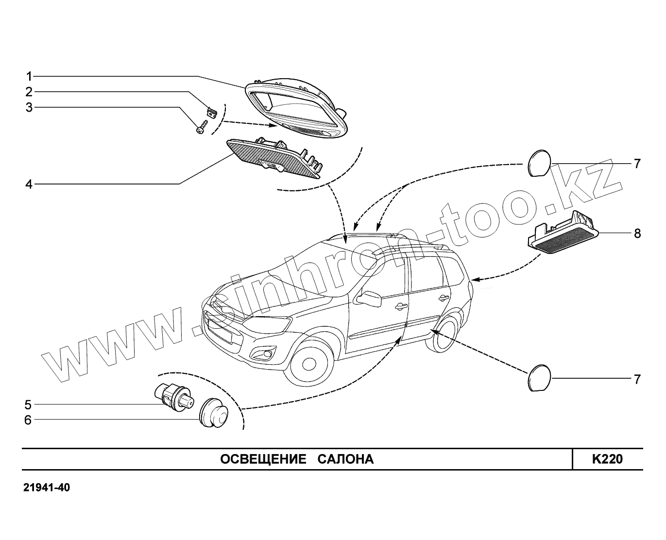 Каталог запасных частей к технике: ВАЗ LADA Kalina 2194. K220. Освещение салона