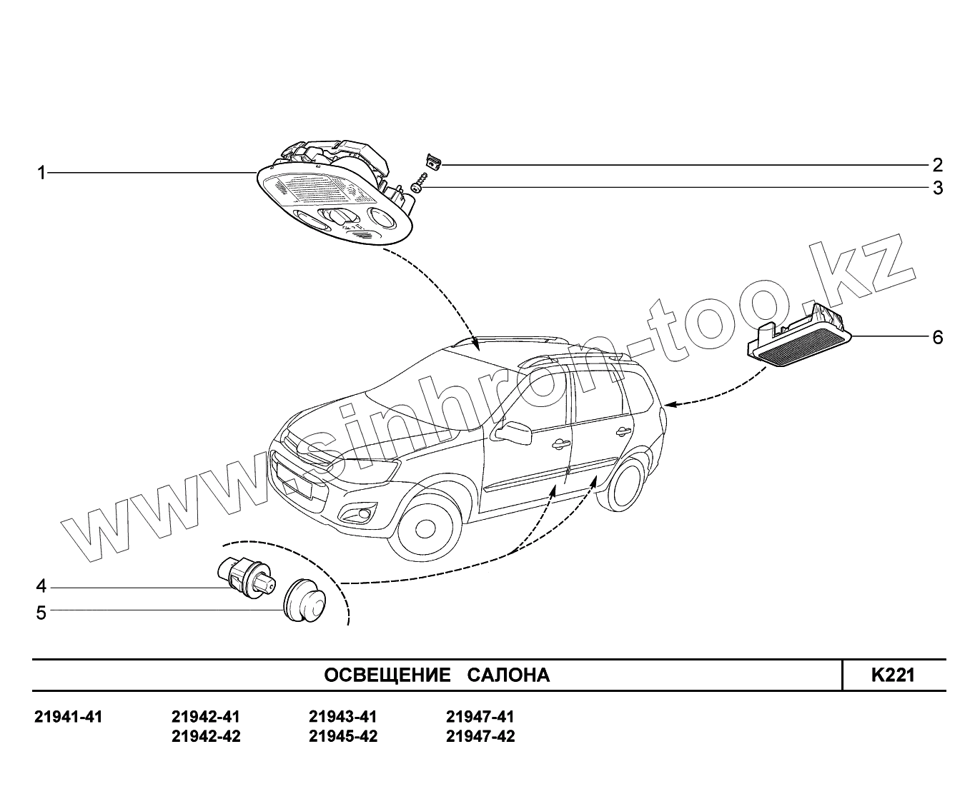 Каталог запасных частей к технике: ВАЗ LADA Kalina 2194. K221. Освещение салона