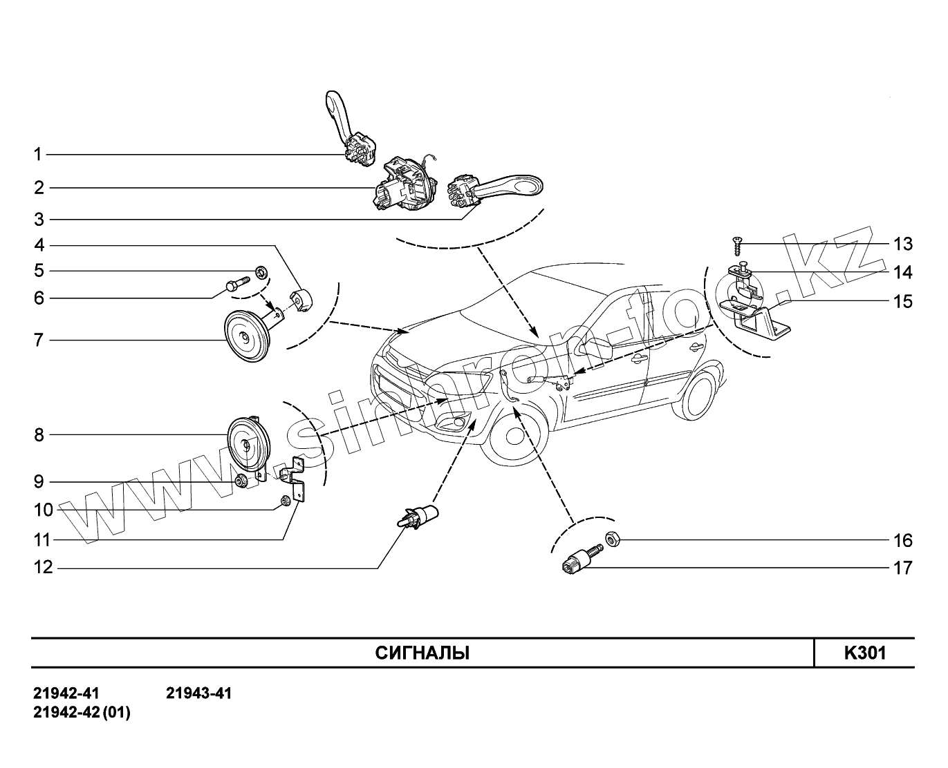 Каталог запасных частей к технике: ВАЗ LADA Kalina 2194. K301. Сигналы