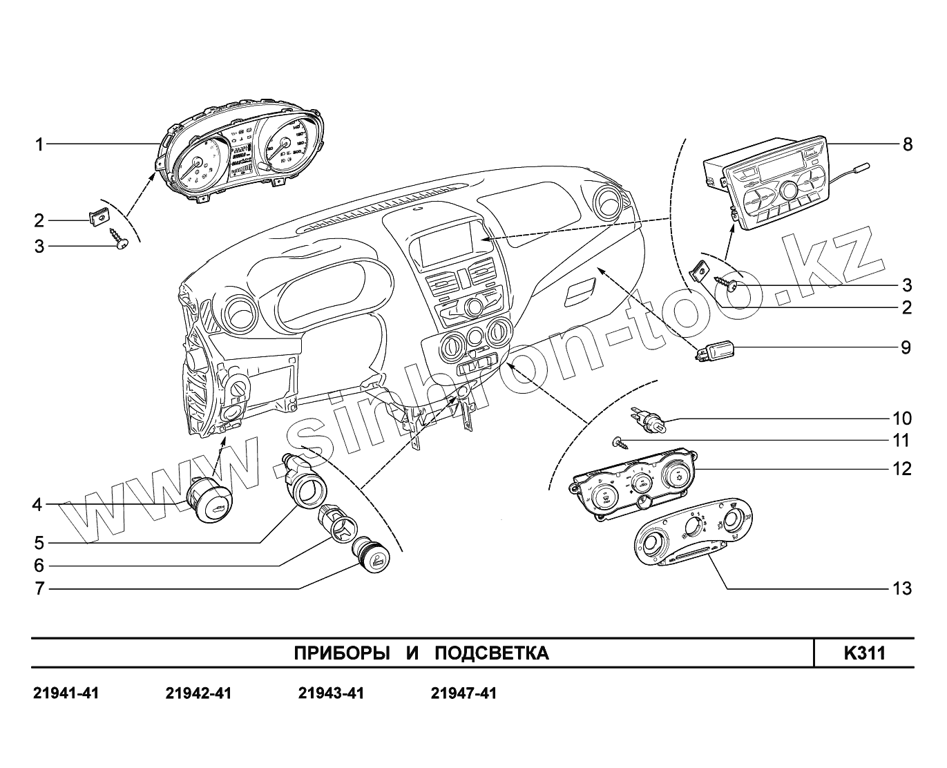 Каталог запасных частей к технике: ВАЗ LADA Kalina 2194. K311. Приборы и подсветка