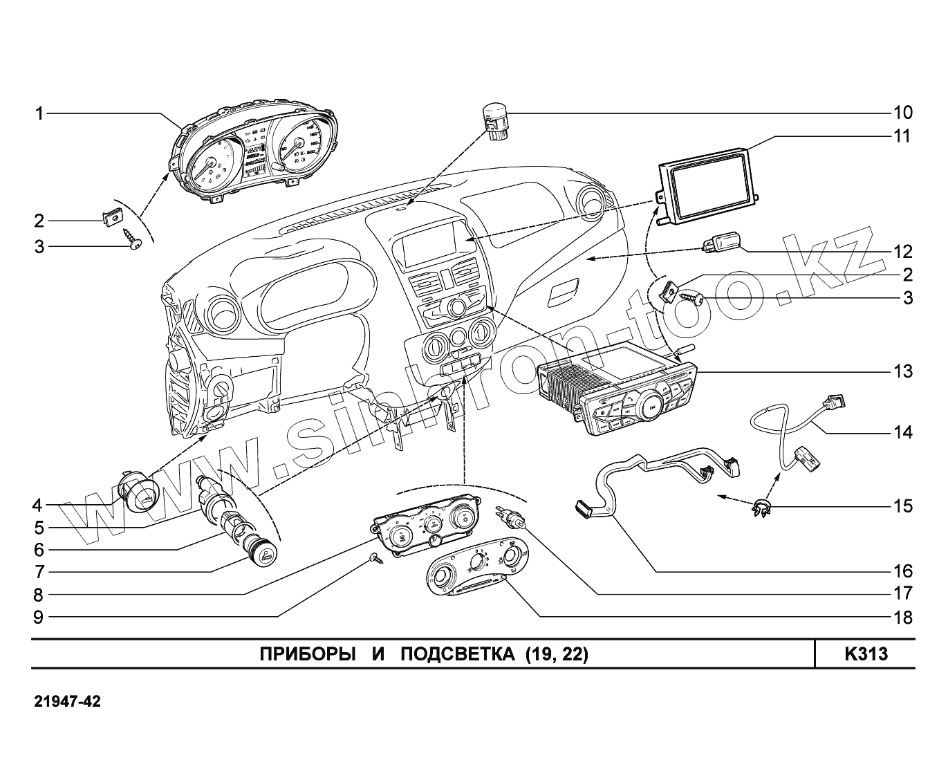Каталог запасных частей к технике: ВАЗ LADA Kalina 2194. K313. Приборы и подсветка