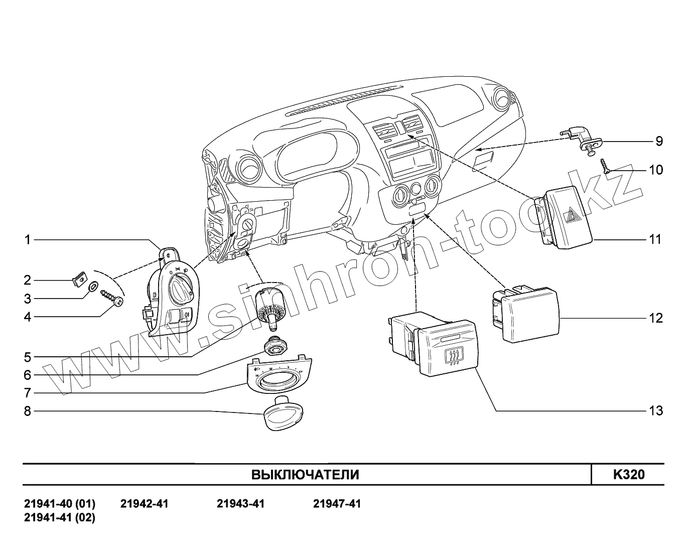 Каталог запасных частей к технике: ВАЗ LADA Kalina 2194. K320. Выключатели