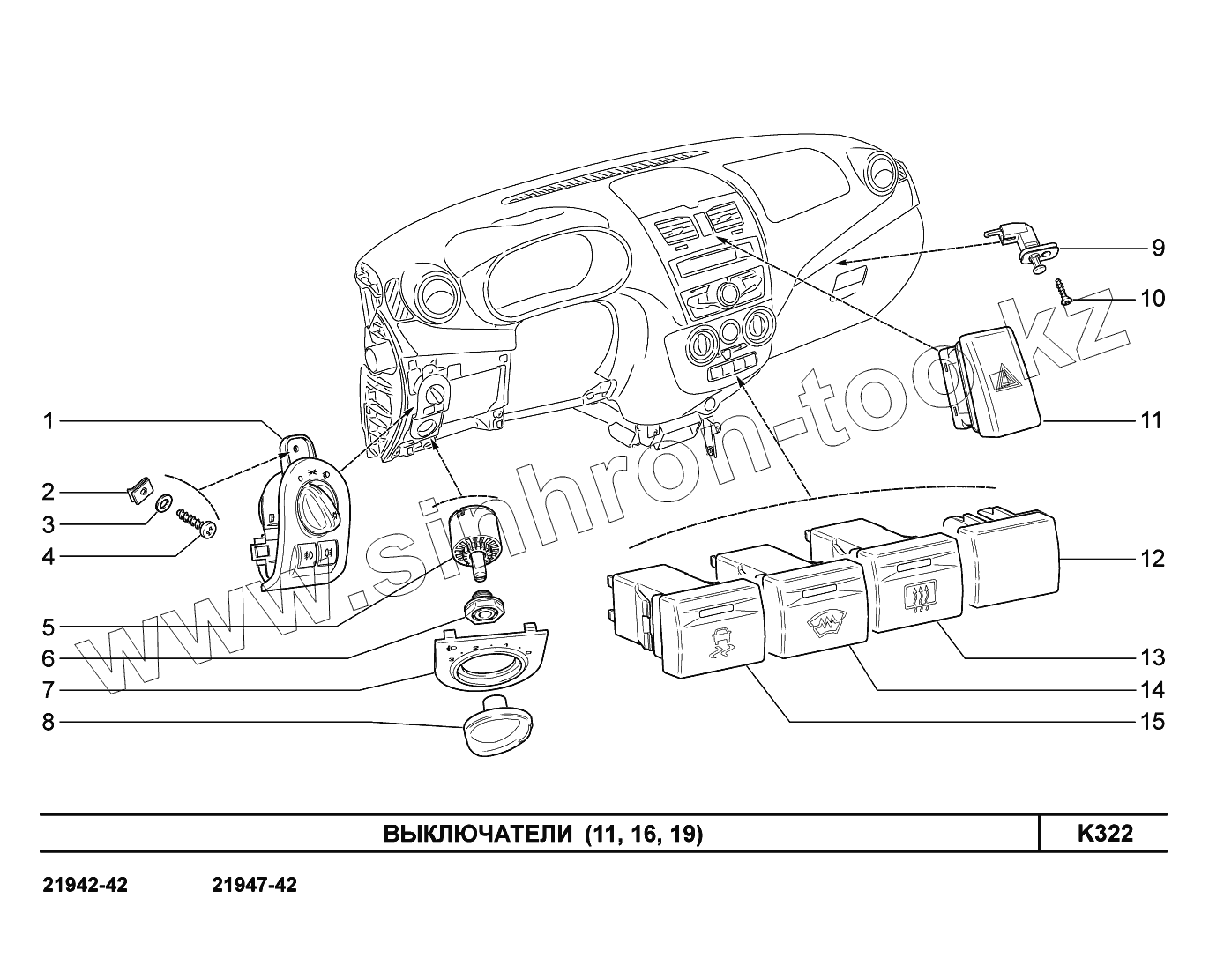 Каталог запасных частей к технике: ВАЗ LADA Kalina 2194. K322. Выключатели