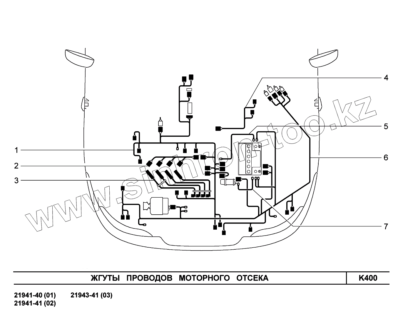K400. Жгуты проводов моторного отсека