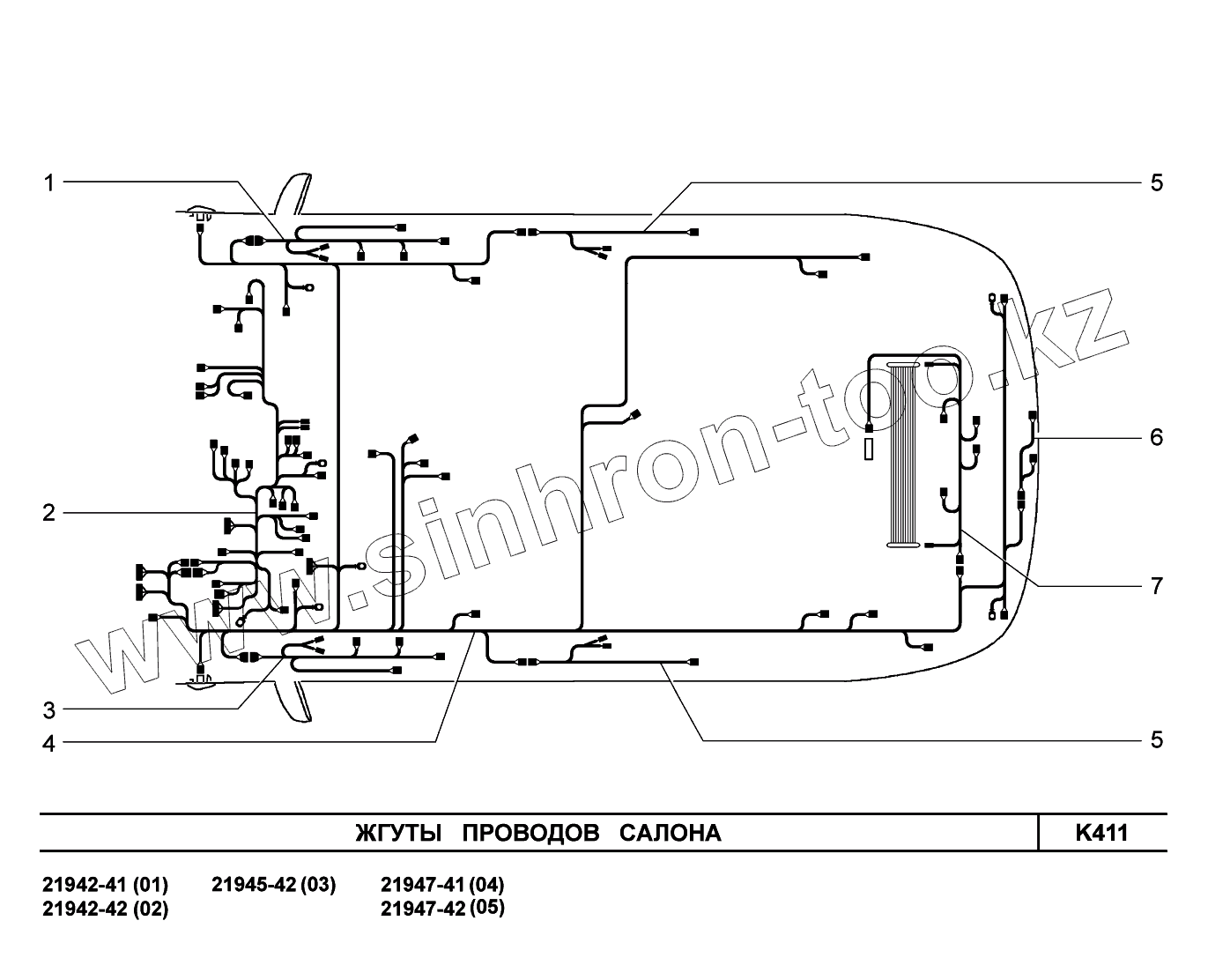 K411. Жгуты проводов салона