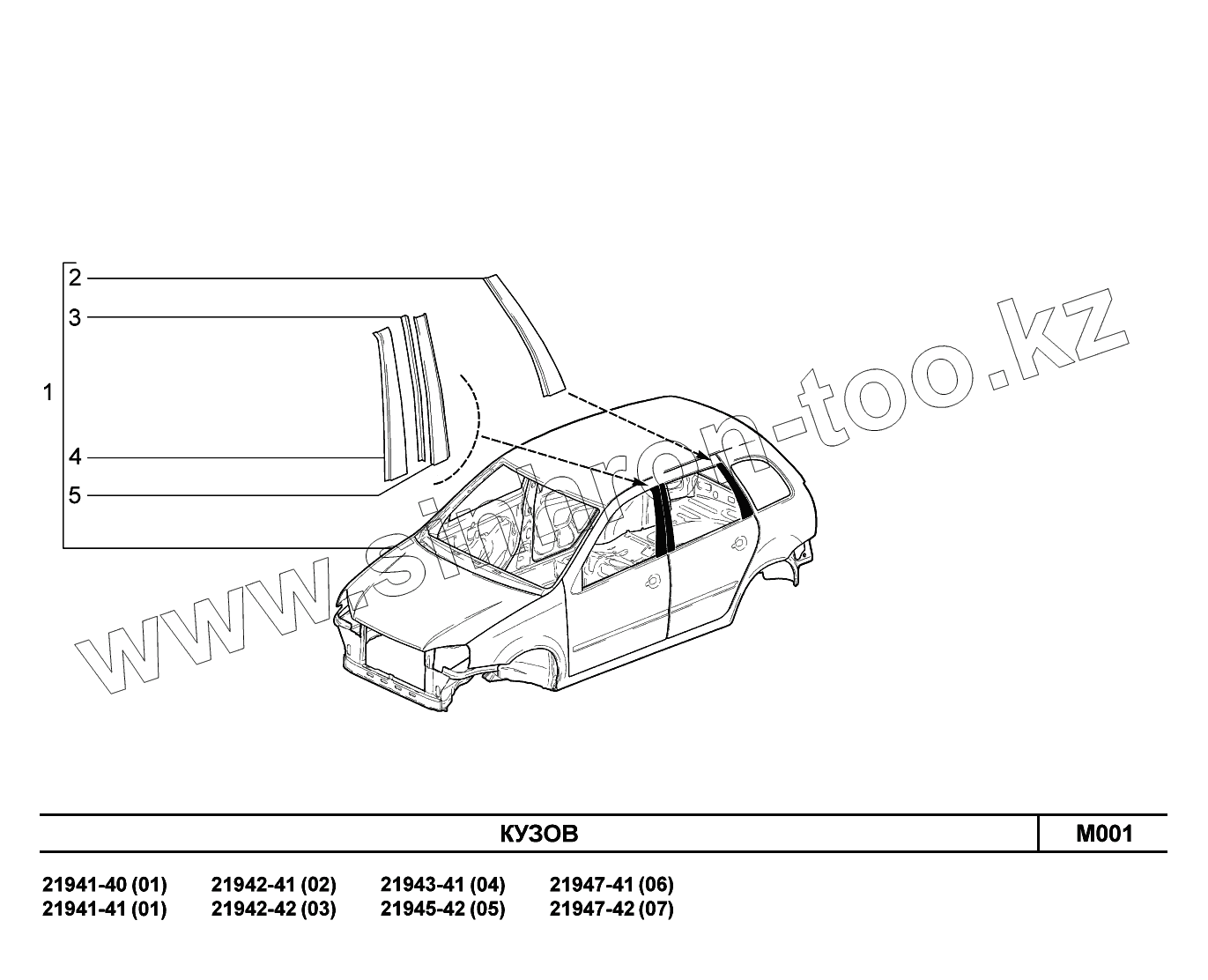 Каталог запасных частей к технике: ВАЗ LADA Kalina 2194. M001. Кузов