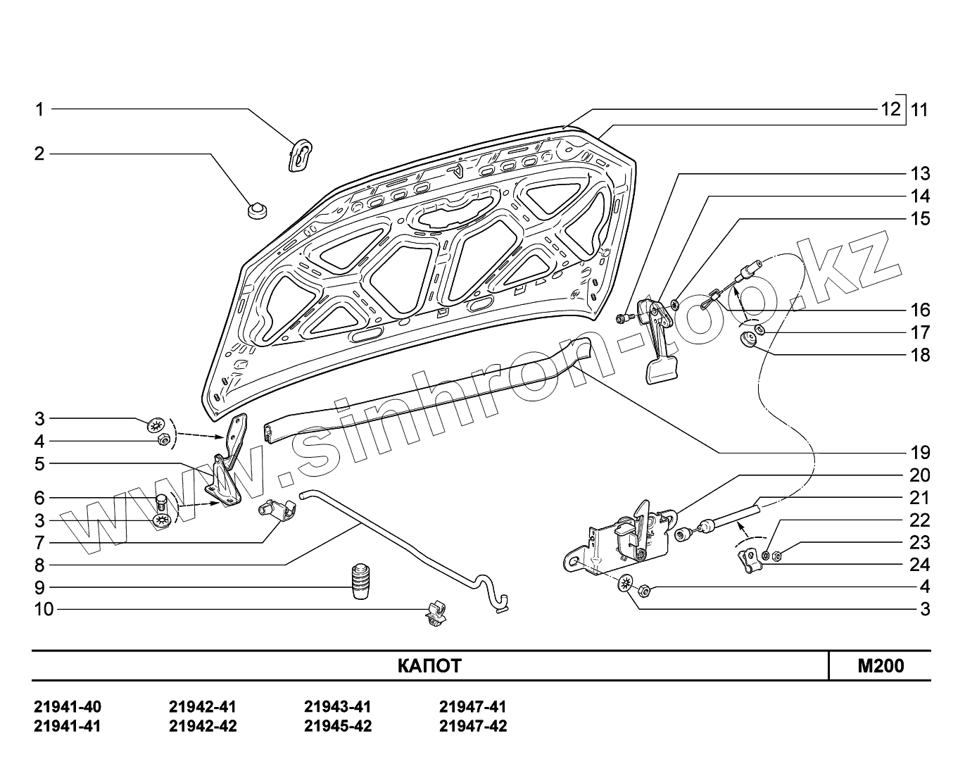 Каталог запасных частей к технике: ВАЗ LADA Kalina 2194. M200. Капот