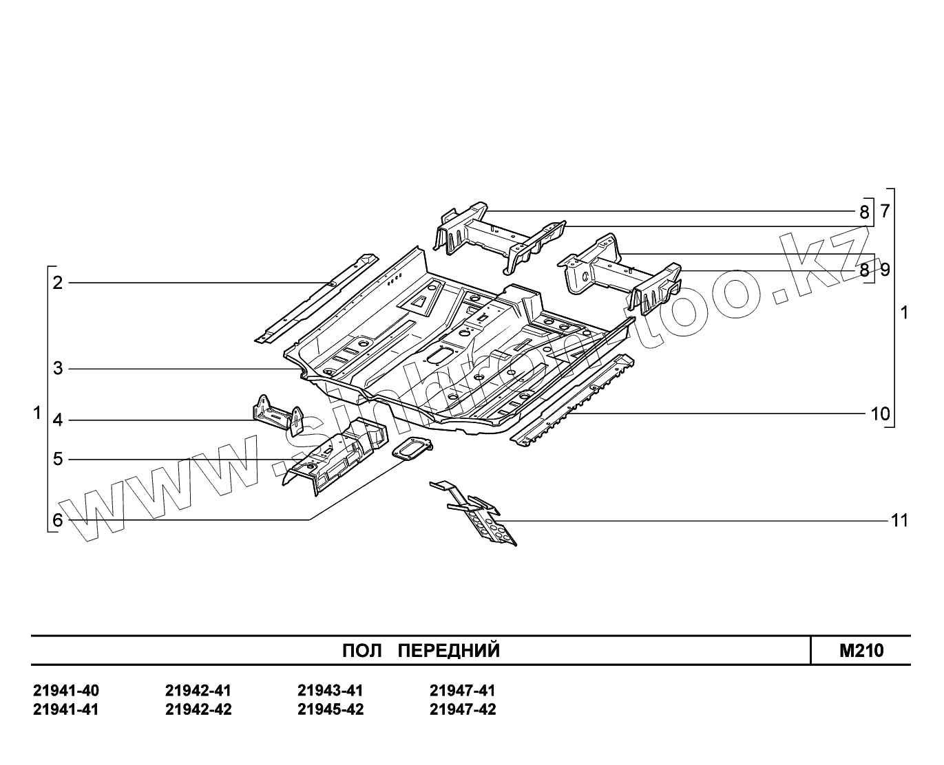 Каталог запасных частей к технике: ВАЗ LADA Kalina 2194. M210. Пол передний