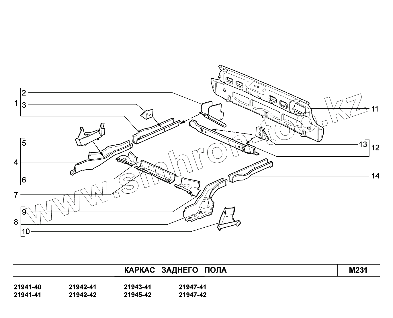 Каталог запасных частей к технике: ВАЗ LADA Kalina 2194. M231. Каркас заднего пола