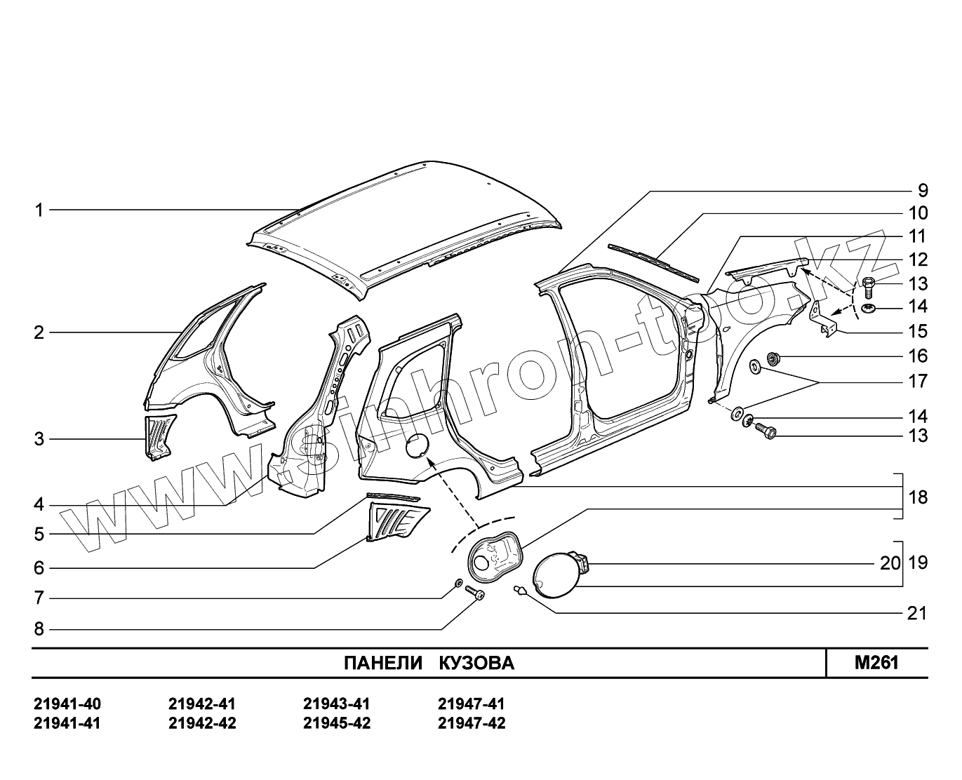 Каталог запасных частей к технике: ВАЗ LADA Kalina 2194. M261. Панели кузова