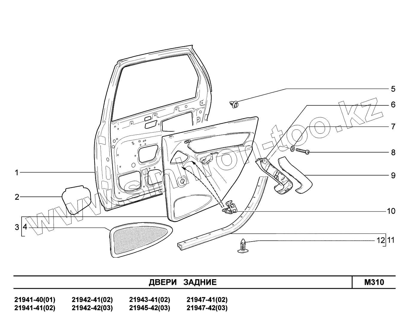 Каталог запасных частей к технике: ВАЗ LADA Kalina 2194. M310. Двери задние