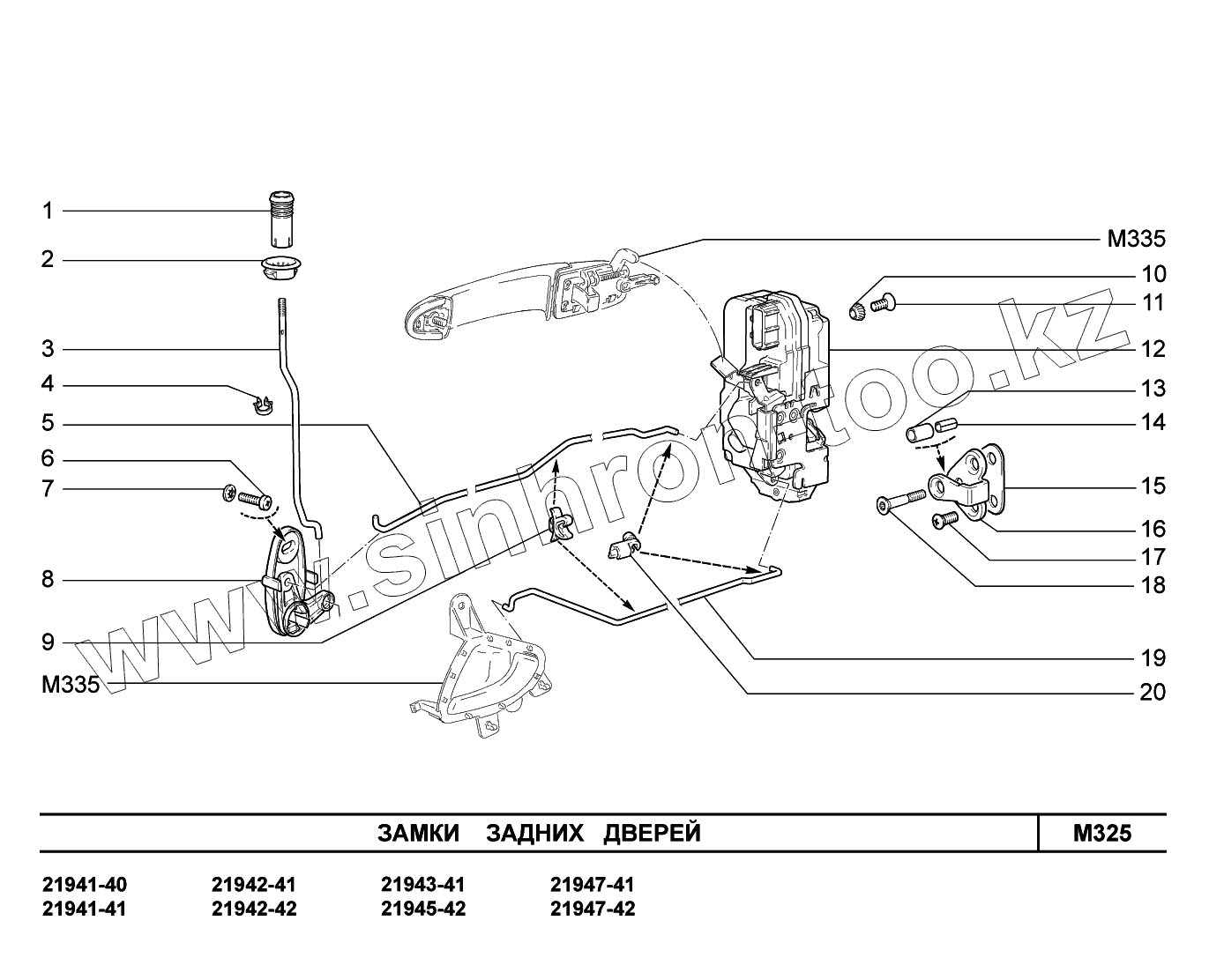 Каталог запасных частей к технике: ВАЗ LADA Kalina 2194. M325. Замки задних дверей