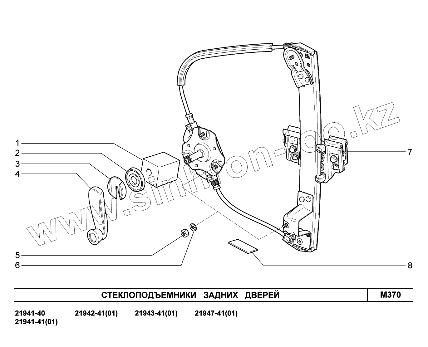 Каталог запасных частей к технике: ВАЗ LADA Kalina 2194. M370. Стеклоподъемники задних дверей