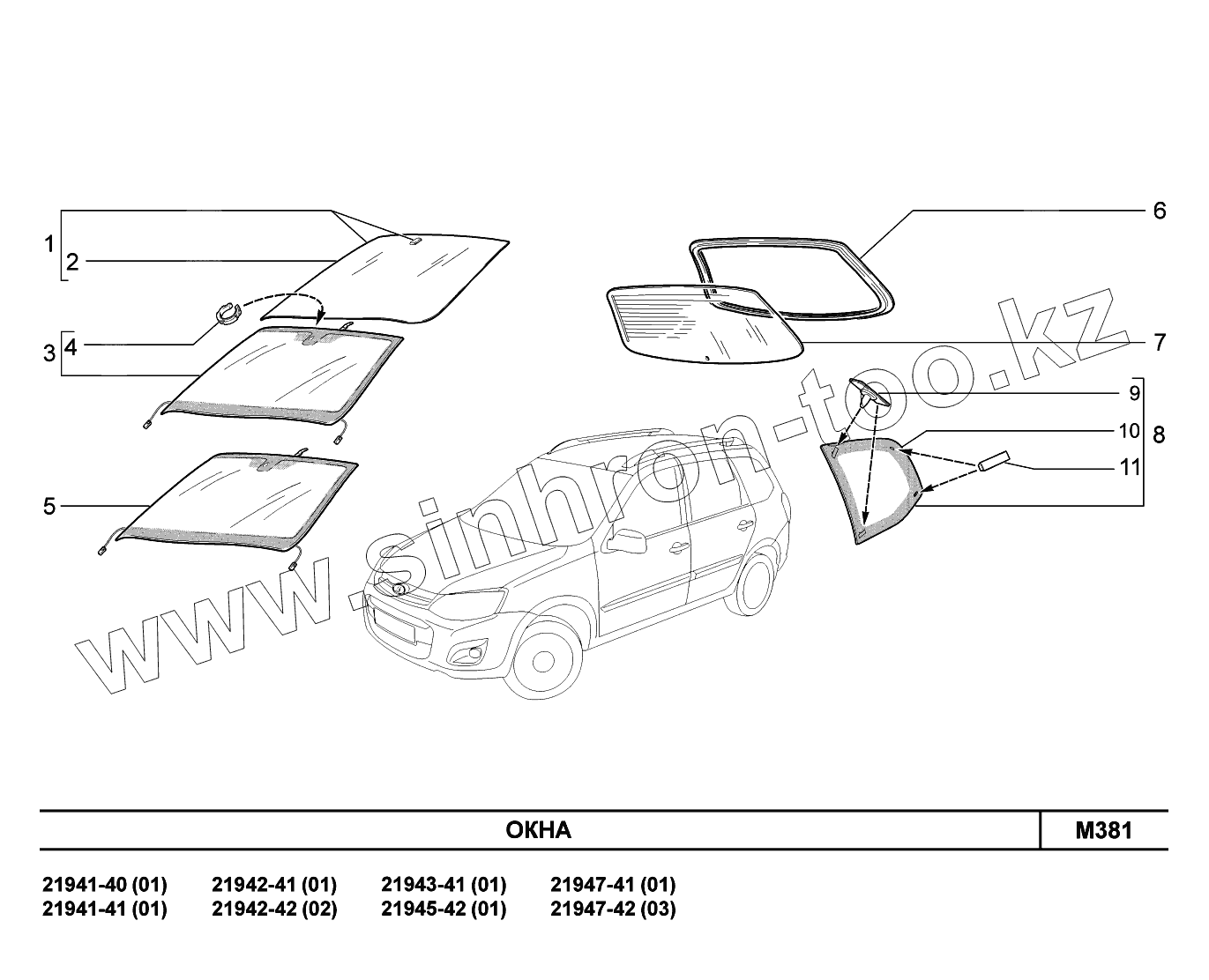 Каталог запасных частей к технике: ВАЗ LADA Kalina 2194. M381. Окна