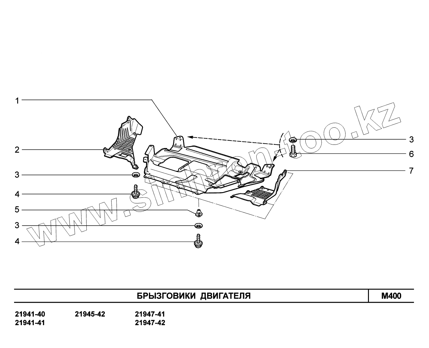 Каталог запасных частей к технике: ВАЗ LADA Kalina 2194. M400. Брызговики двигателя