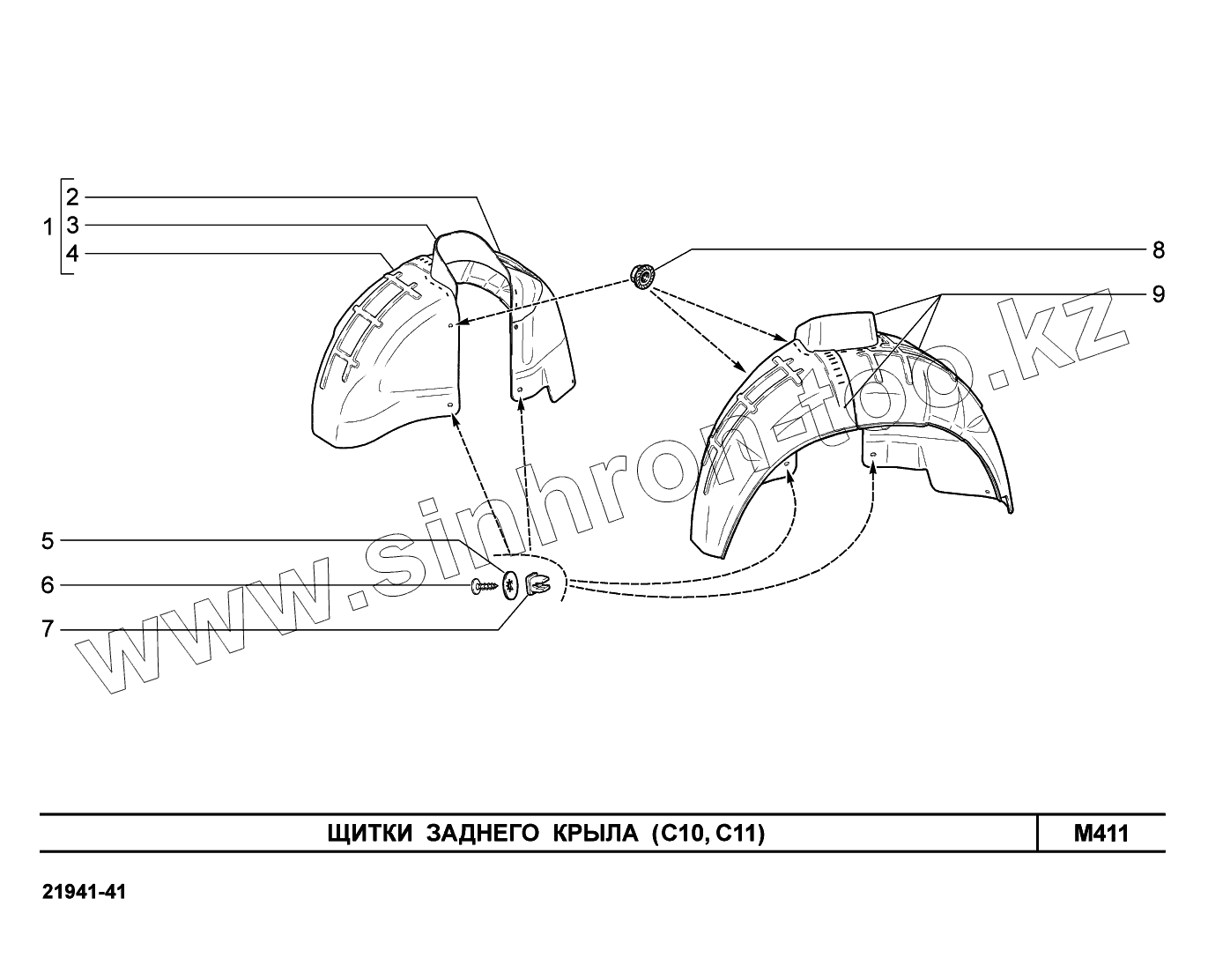Каталог запасных частей к технике: ВАЗ LADA Kalina 2194. M411. Щитки заднего крыла