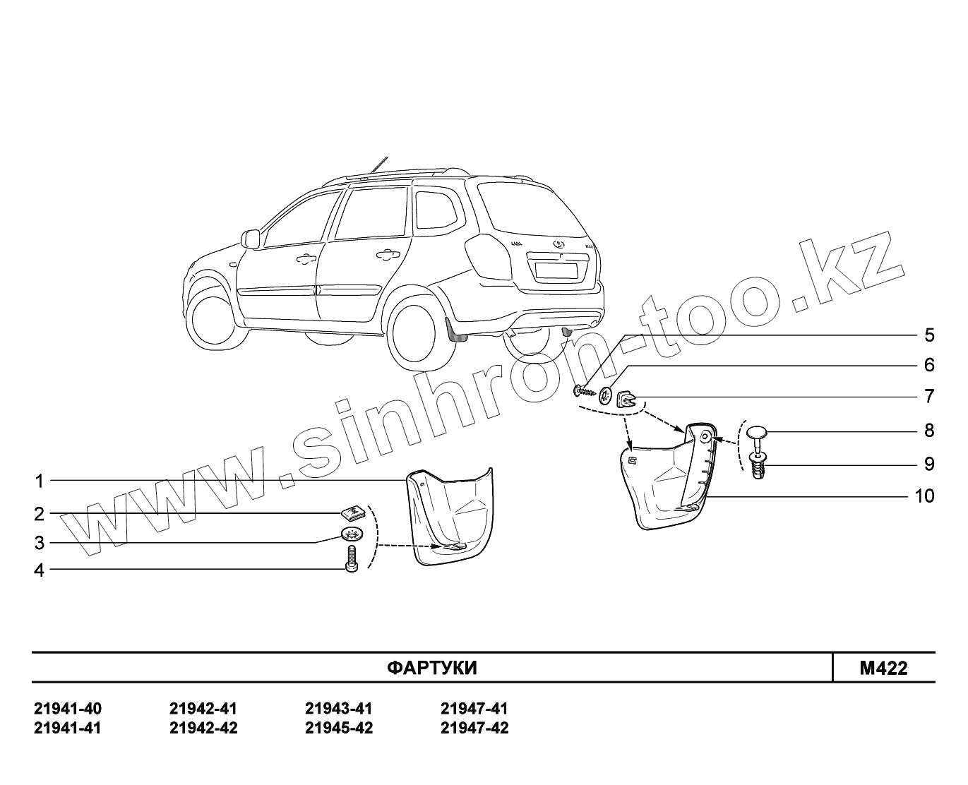 Каталог запасных частей к технике: ВАЗ LADA Kalina 2194. M422. Фартуки