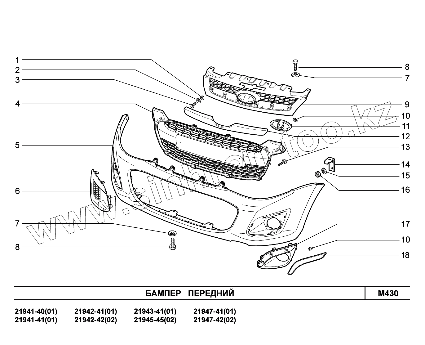 Каталог запасных частей к технике: ВАЗ LADA Kalina 2194. M430. Бампер передний