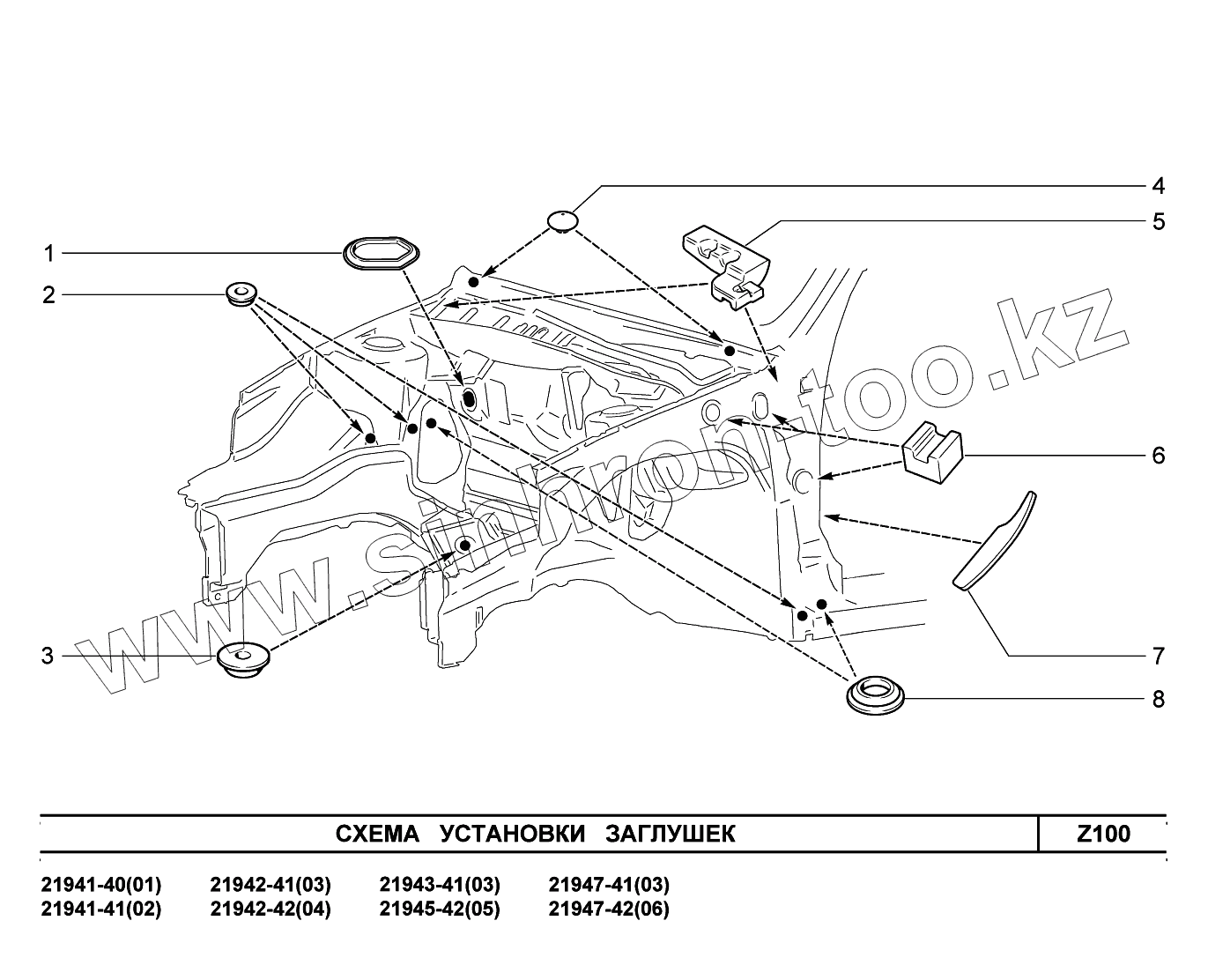 Каталог запасных частей к технике: ВАЗ LADA Kalina 2194. Z100. Схема установки заглушек