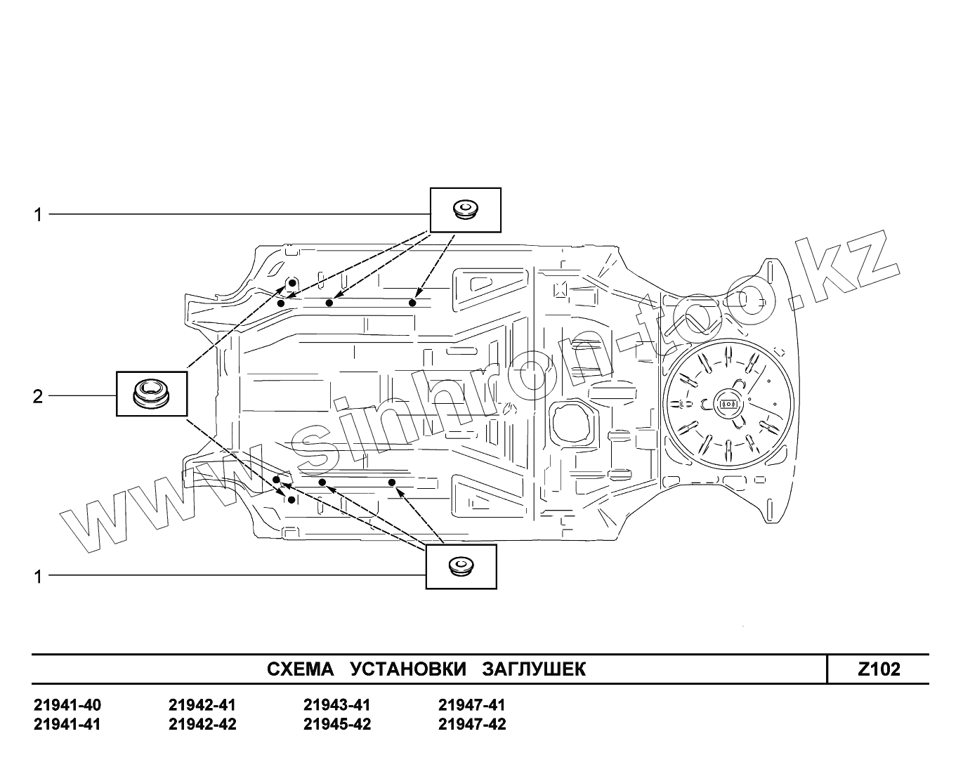 Каталог запасных частей к технике: ВАЗ LADA Kalina 2194. Z102. Схема установки заглушек