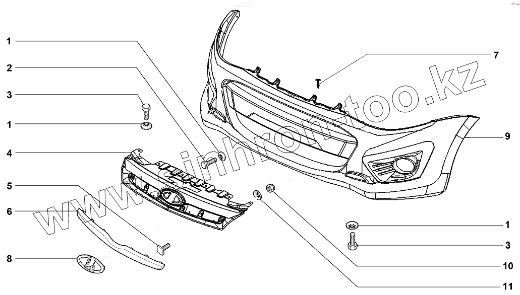 Каталог запасных частей к технике: ВАЗ LADA Kalina sport (доп.). Бампер передний