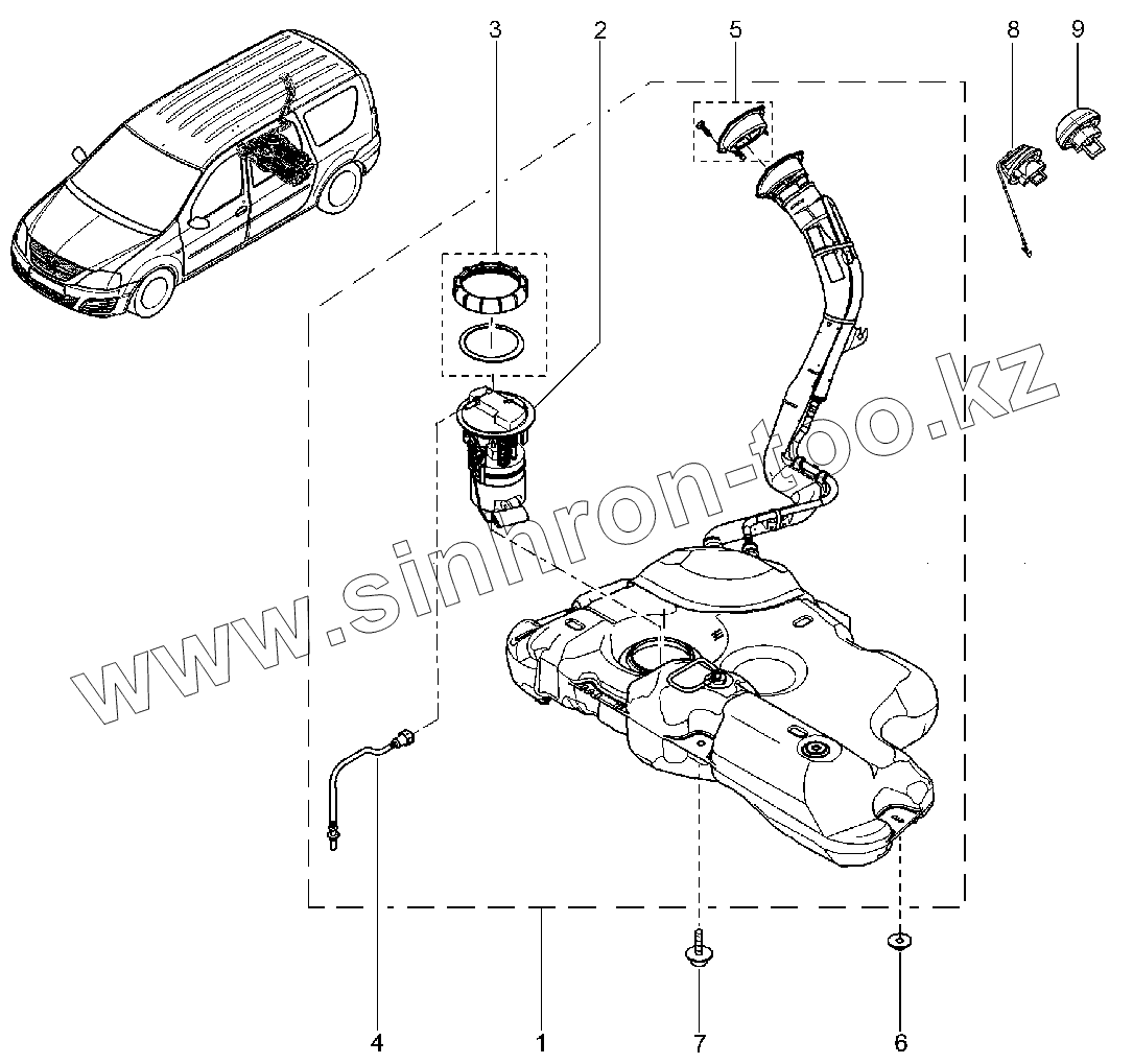 Каталог запасных частей к технике: ВАЗ LADA Largus. Бак топливный в сборе