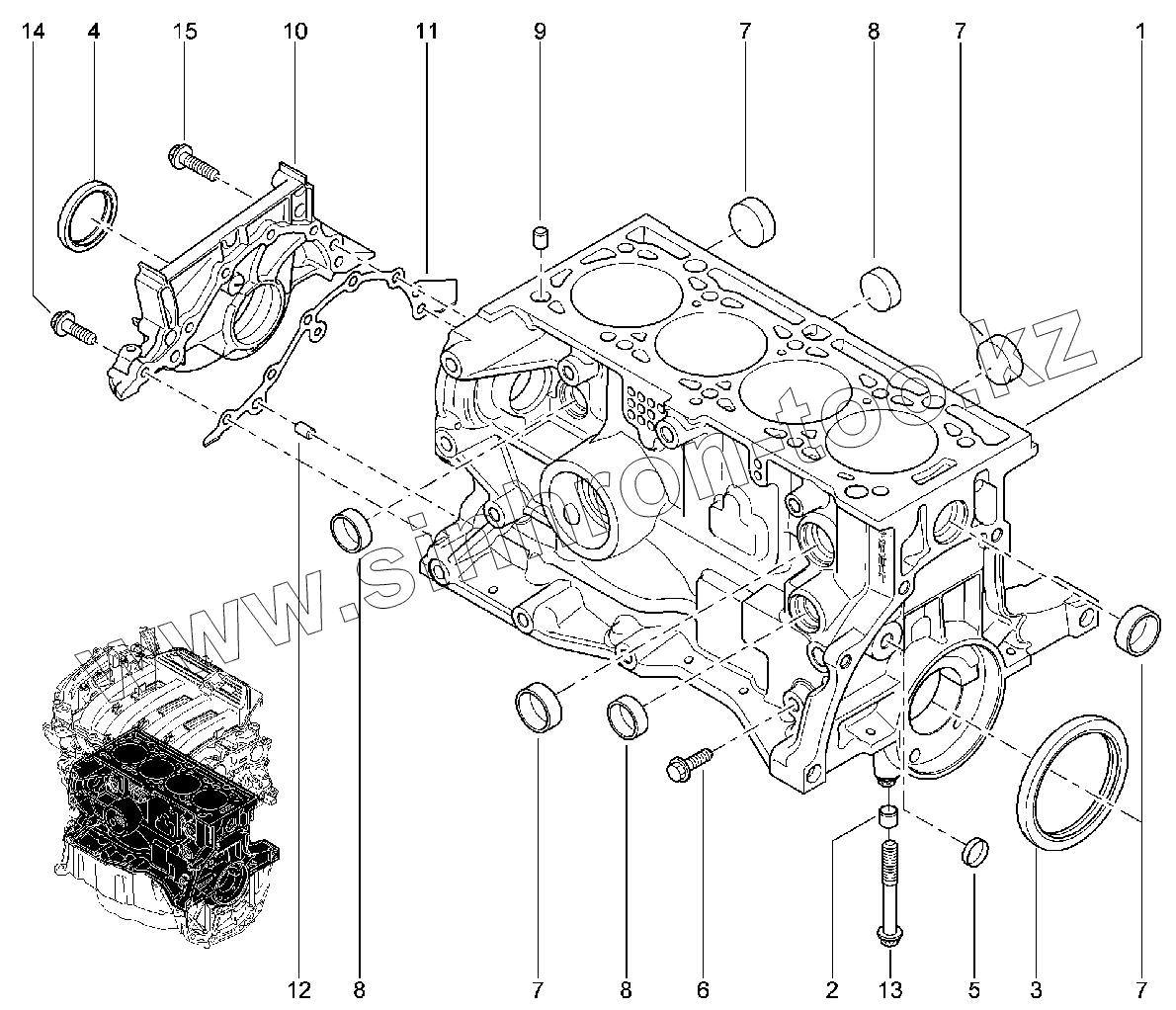 Каталог запасных частей к технике: ВАЗ LADA Largus. Блок цилиндров (K4M)