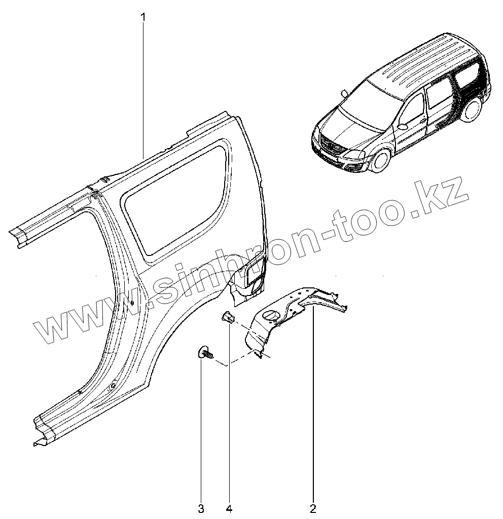 Каталог запасных частей к технике: ВАЗ LADA Largus. Боковина кузова задняя левая