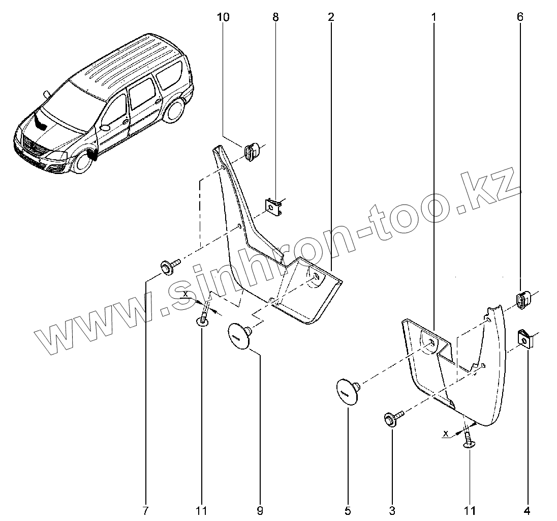 Каталог запасных частей к технике: ВАЗ LADA Largus. Фартук переднего колеса