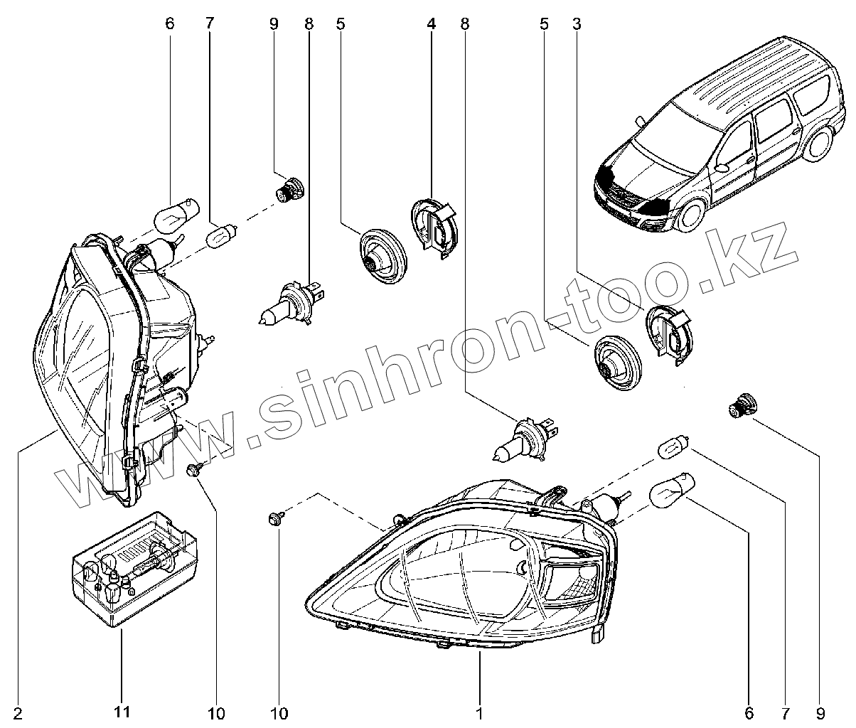 Каталог запасных частей к технике: ВАЗ LADA Largus. Фары передние