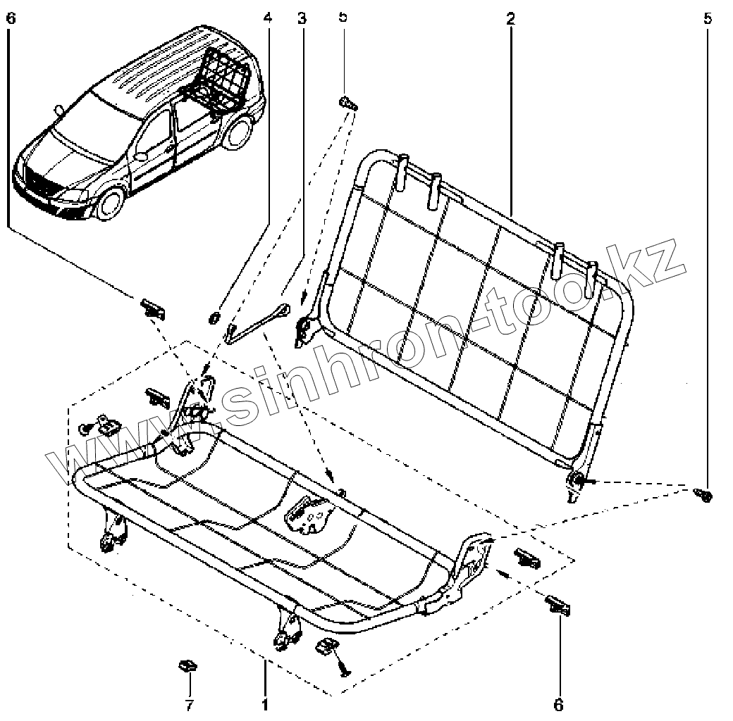 Каталог запасных частей к технике: ВАЗ LADA Largus. Каркас сидений третьего ряда (Стандарт)