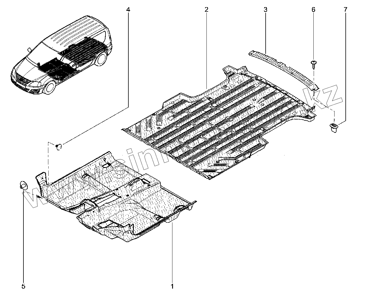 Каталог запасных частей к технике: ВАЗ LADA Largus. Ковер пола (фургон)