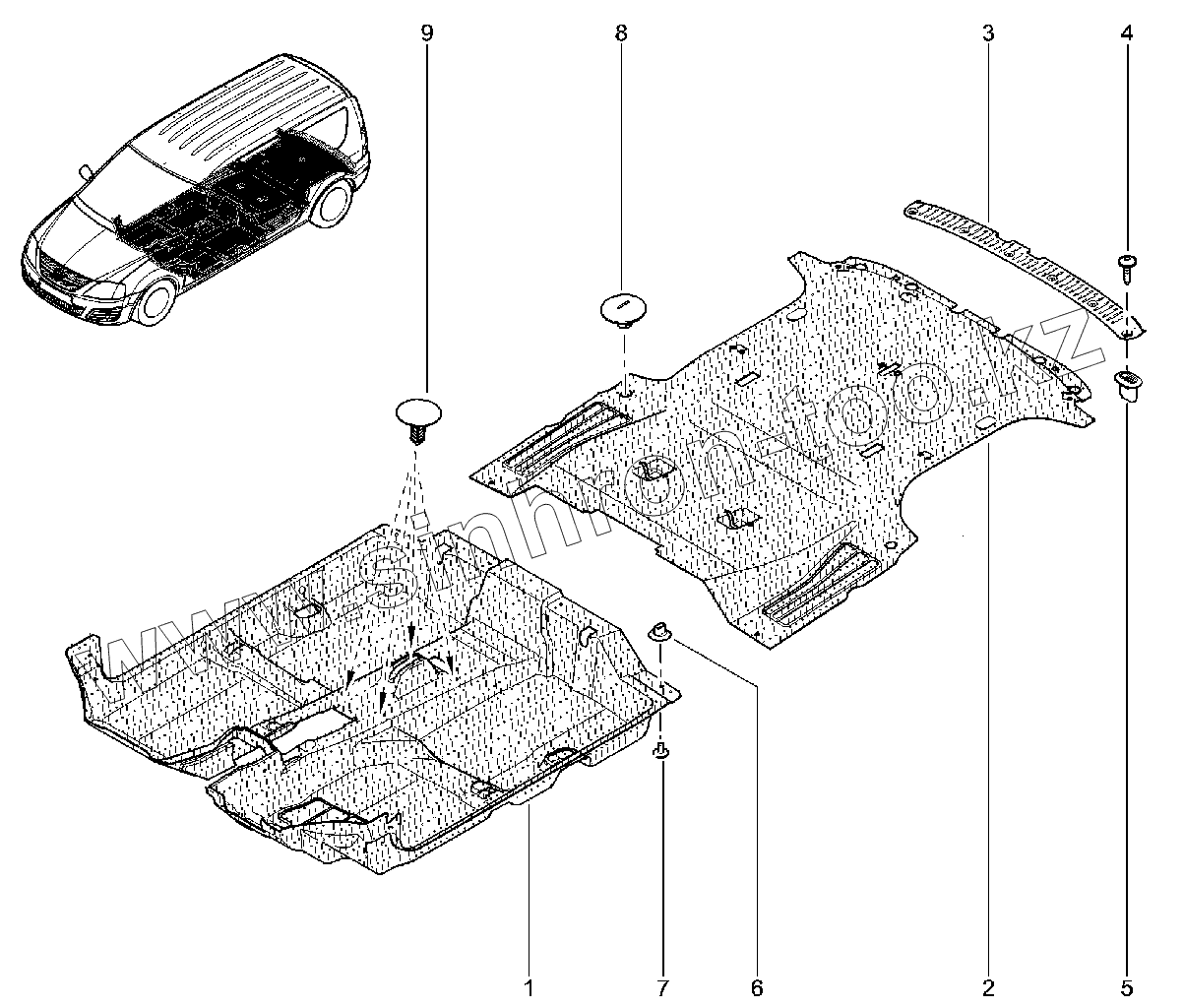 Каталог запасных частей к технике: ВАЗ LADA Largus. Ковер пола (универсал)