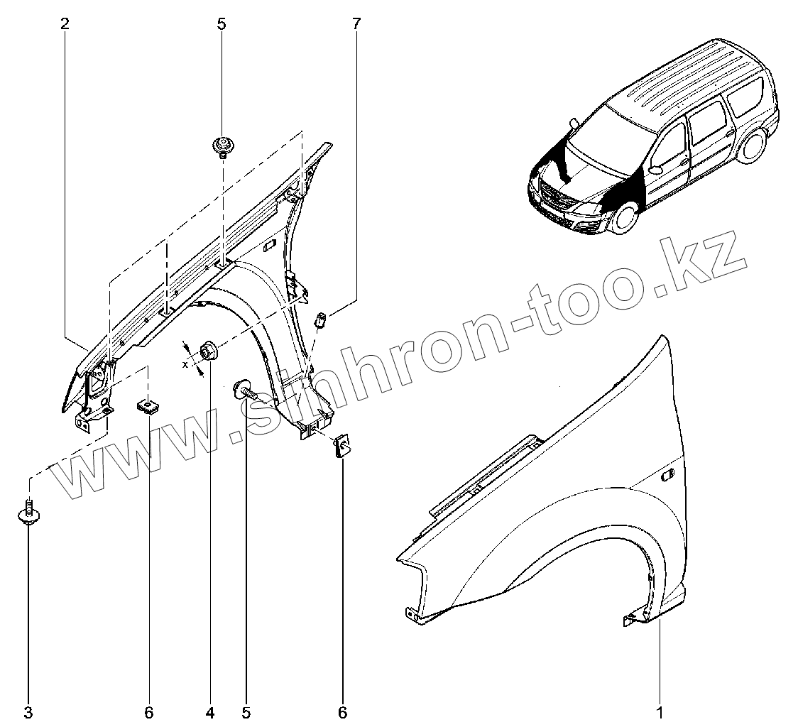 Каталог запасных частей к технике: ВАЗ LADA Largus. Крылья передние