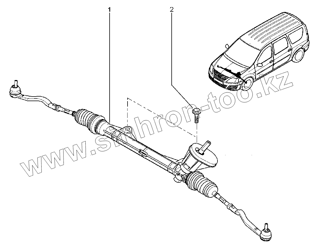 Каталог запасных частей к технике: ВАЗ LADA Largus. Механизм рулевой без ГУР