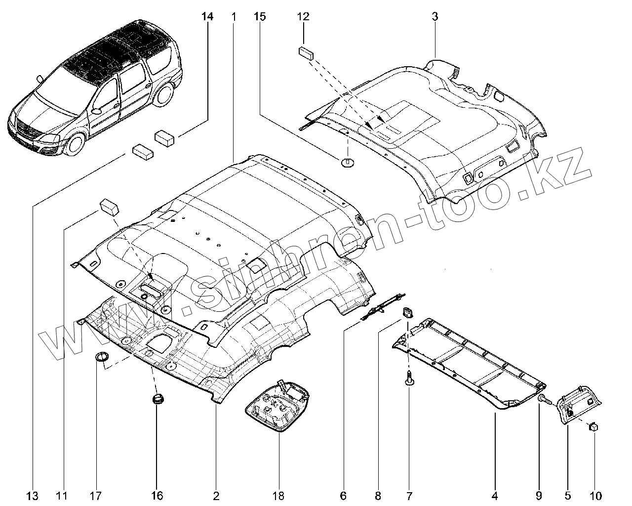 Каталог запасных частей к технике: ВАЗ LADA Largus. Обивка крыши (универсал)