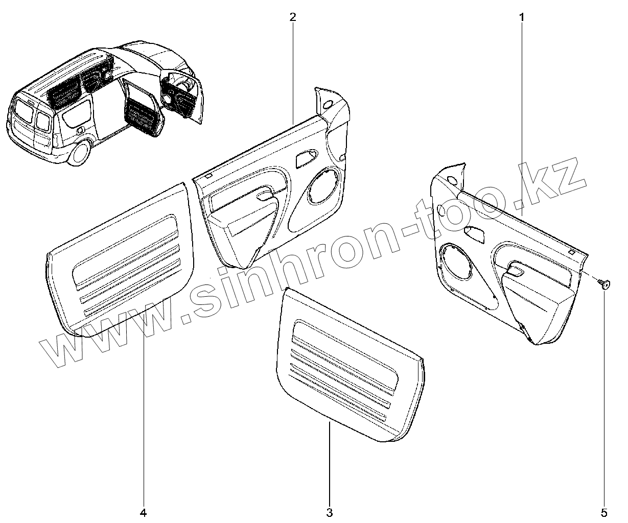 Каталог запасных частей к технике: ВАЗ LADA Largus. Обивки дверей (фургон)