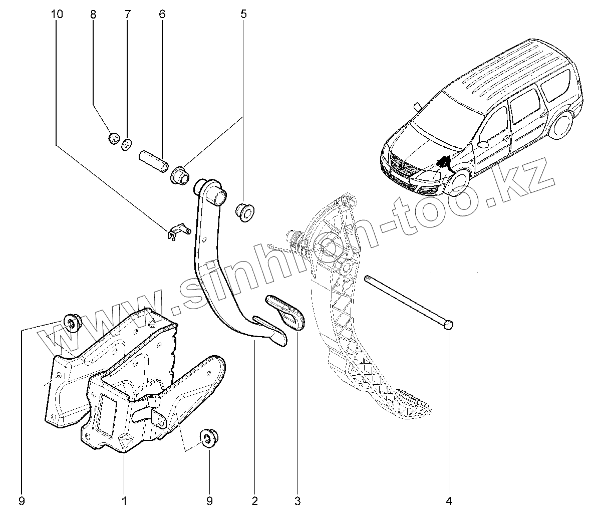 Каталог запасных частей к технике: ВАЗ LADA Largus. Педаль тормоза (F90, K90)