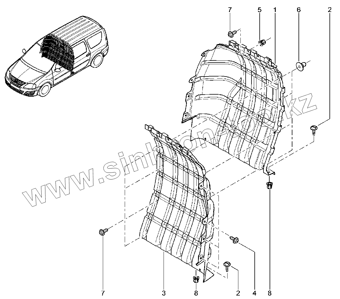 Каталог запасных частей к технике: ВАЗ LADA Largus. Перегородки кузова