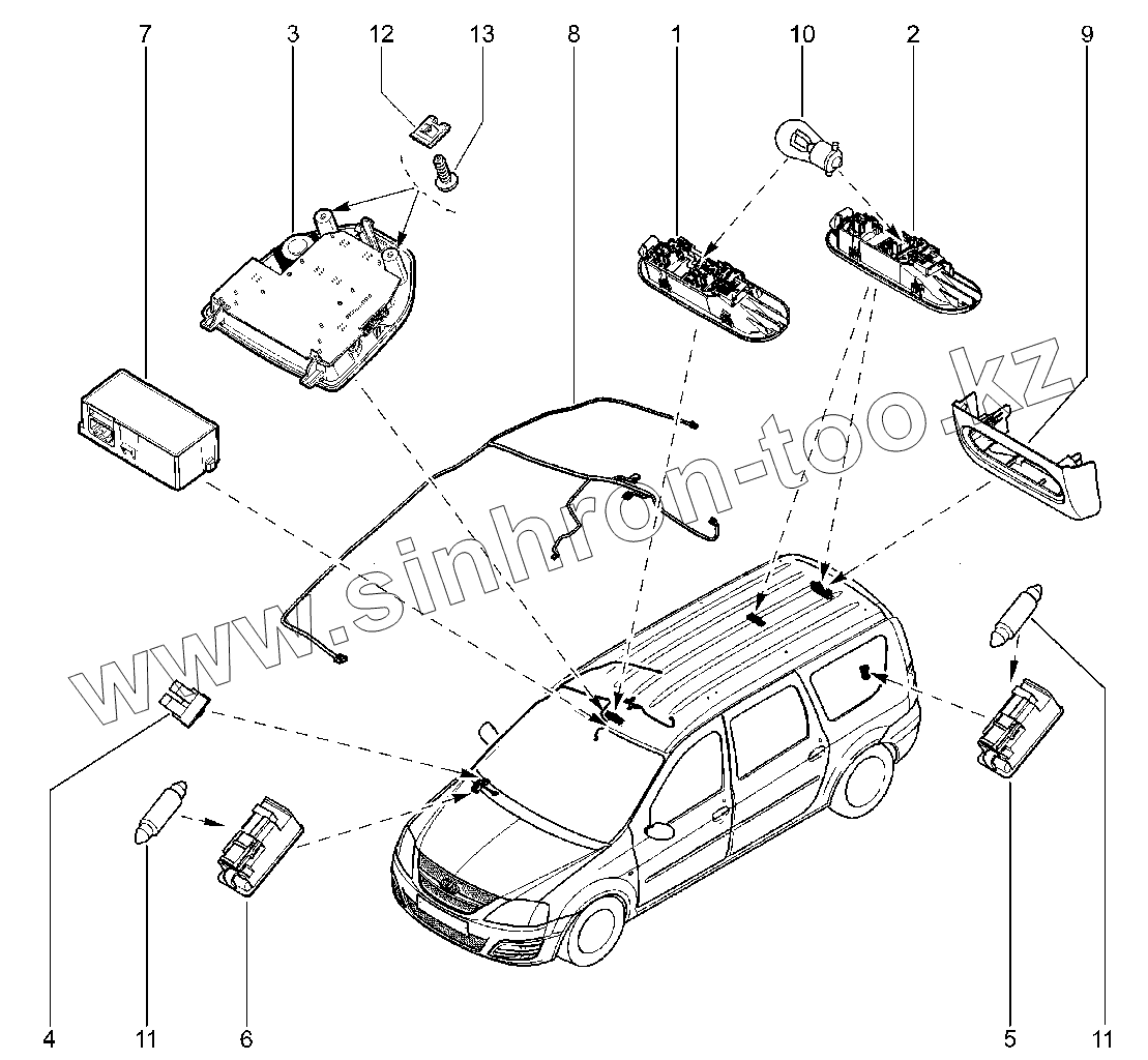 Каталог запасных частей к технике: ВАЗ LADA Largus. Плафоны освещения салона