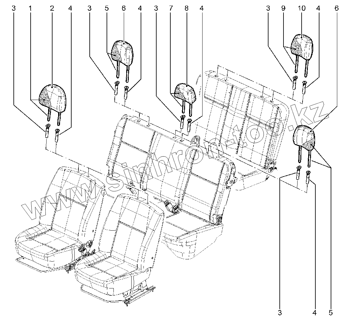 Каталог запасных частей к технике: ВАЗ LADA Largus. Подголовники (Стандарт)