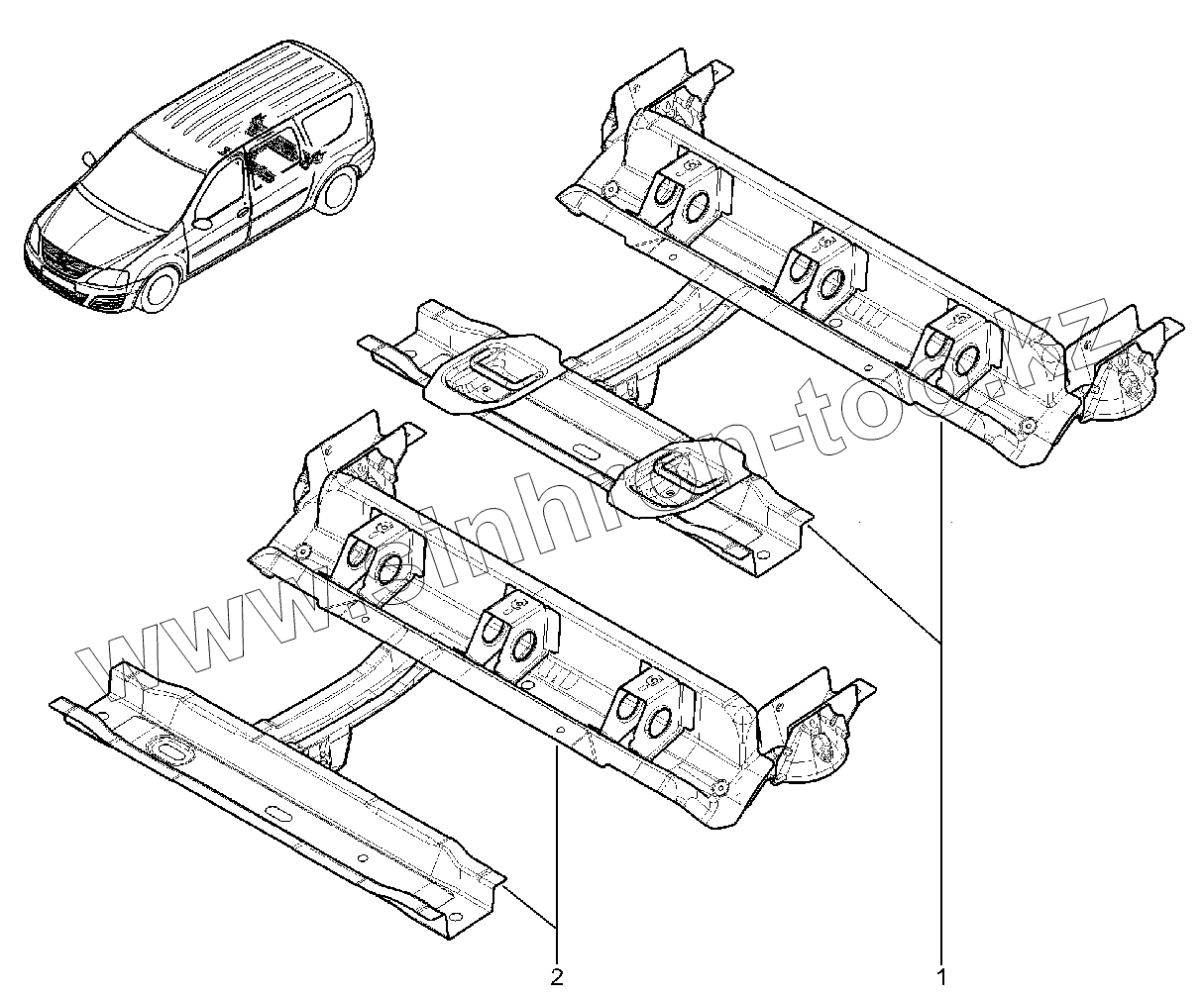 Каталог запасных частей к технике: ВАЗ LADA Largus. Поперечина центральная задняя
