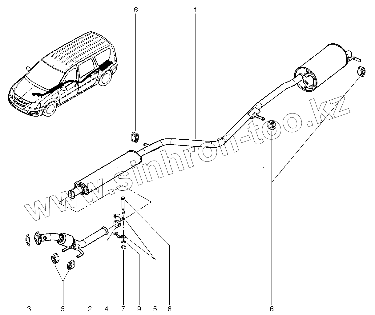 Каталог запасных частей к технике: ВАЗ LADA Largus. Система выпуска (P3M, P4M)