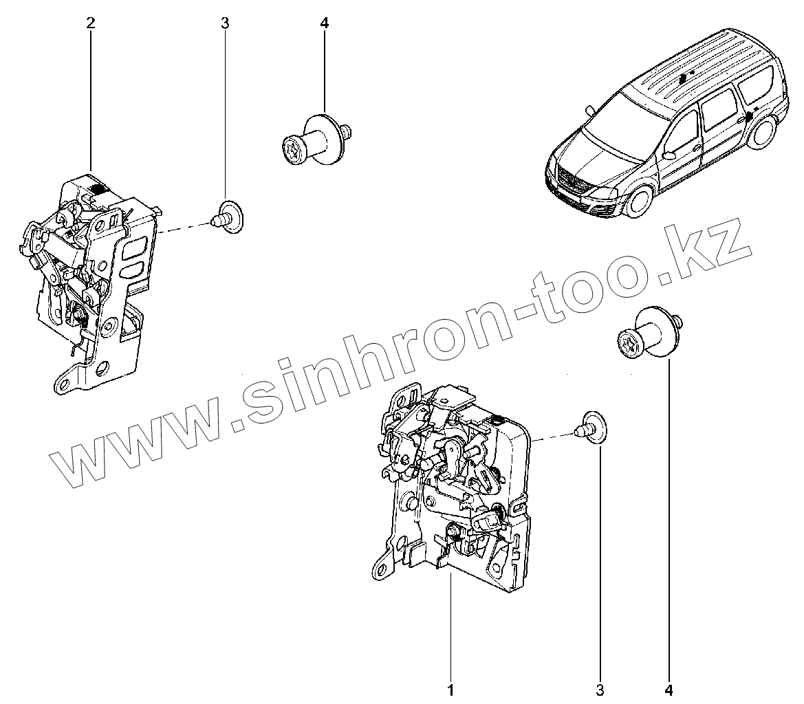 Каталог запасных частей к технике: ВАЗ LADA Largus. Замки задних дверей (механические)