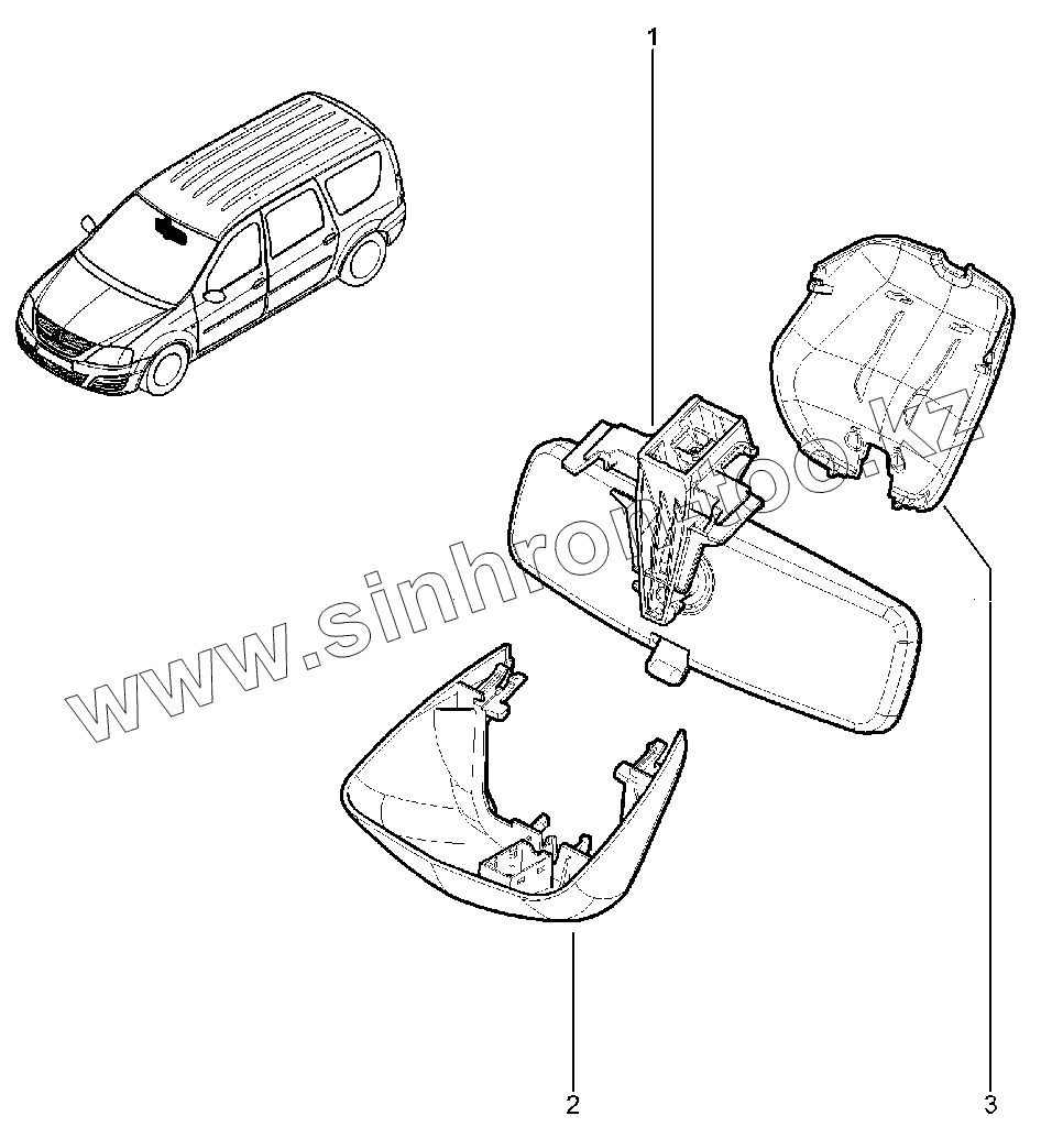 Каталог запасных частей к технике: ВАЗ LADA Largus. Зеркало заднего вида внутреннее (FL)