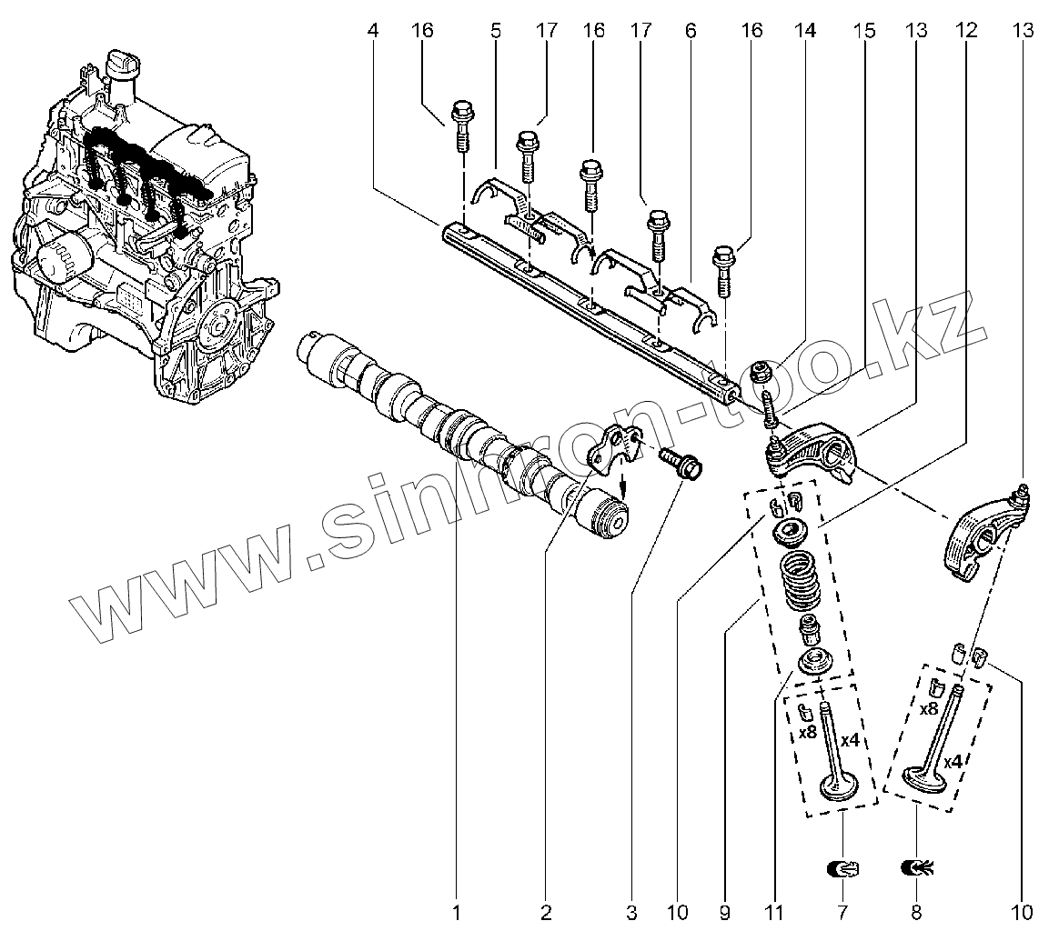 Каталог запасных частей к технике: ВАЗ LADA Largus. 117610. Распредвалы, клапаны (K7M)