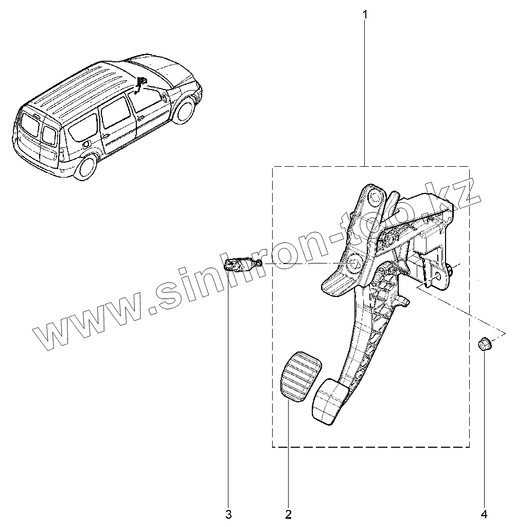 Каталог запасных частей к технике: ВАЗ LADA Largus. 203210. Педаль сцепления (P3M,P4M)