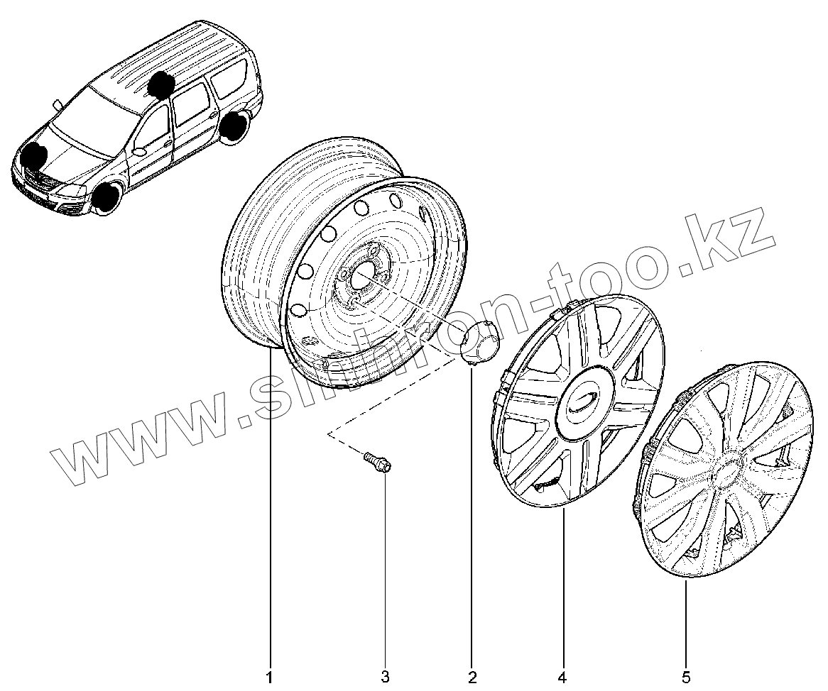 Каталог запасных частей к технике: ВАЗ LADA Largus. 331110. Диск колеса (штампосварной) 15"