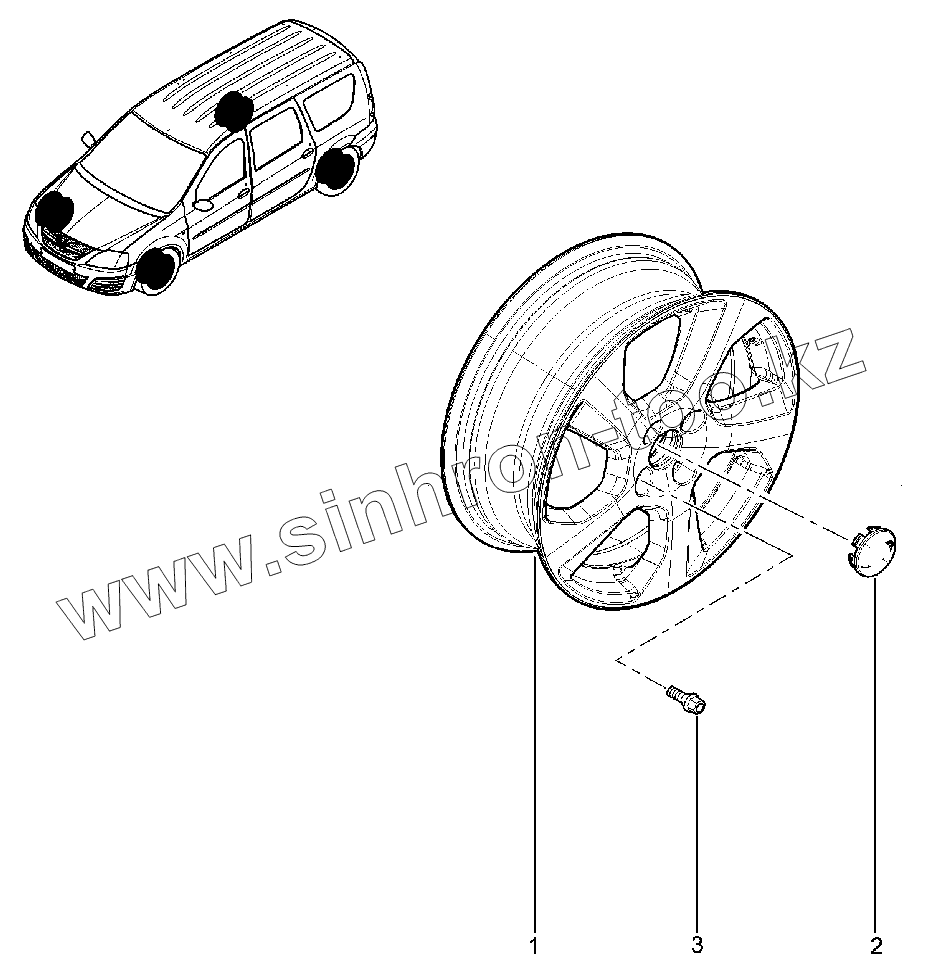 Каталог запасных частей к технике: ВАЗ LADA Largus. 331310. Диск колеса (литой)15" Гранит